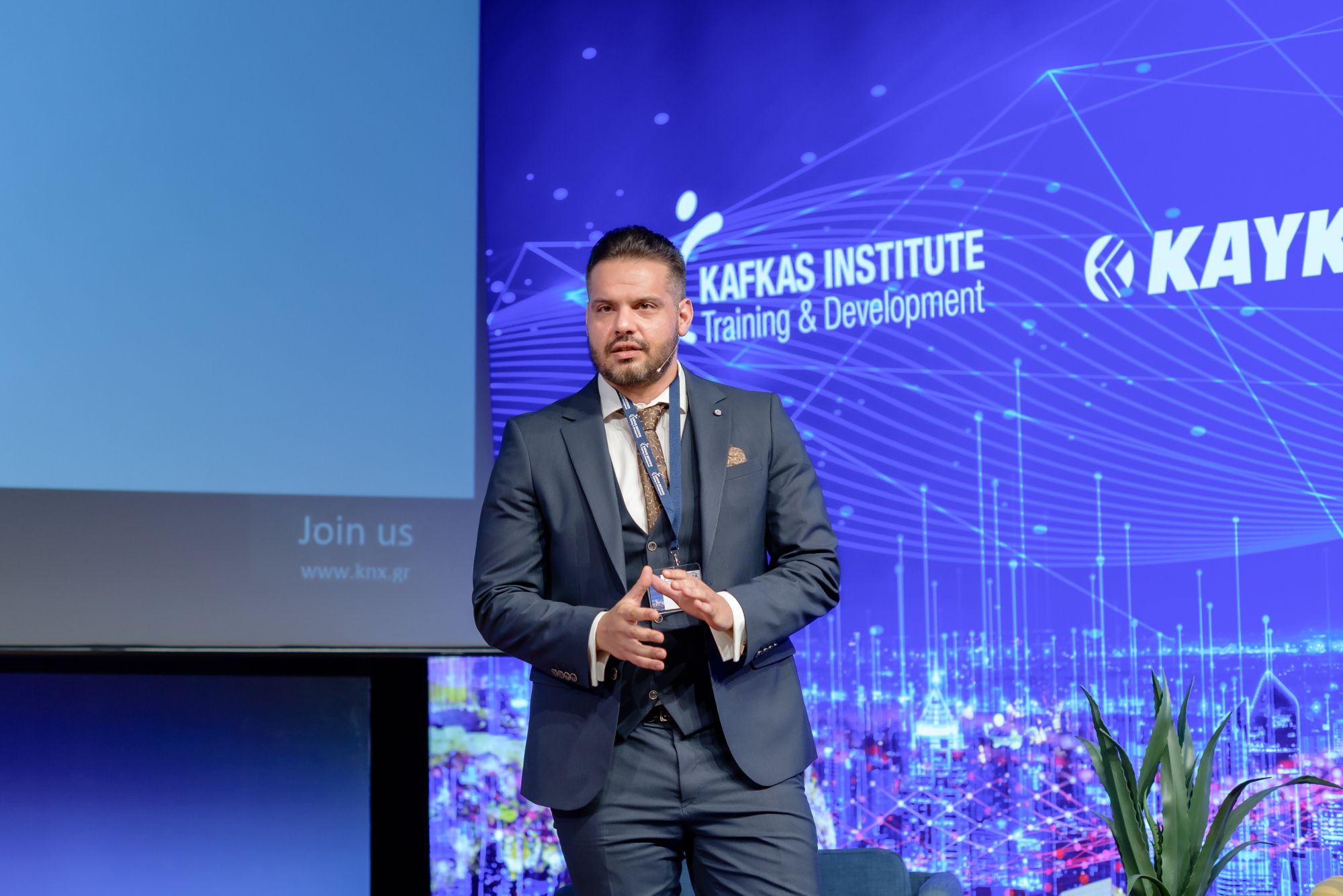 Ο κ. Νικόλαος Γκλιάτης, Πρόεδρος του KNX National απηύθυνε χαιρετισμό στην εκδήλωση παρουσιάζοντας τις εξελίξεις του κλάδου και τα μελλοντικά πλάνα.